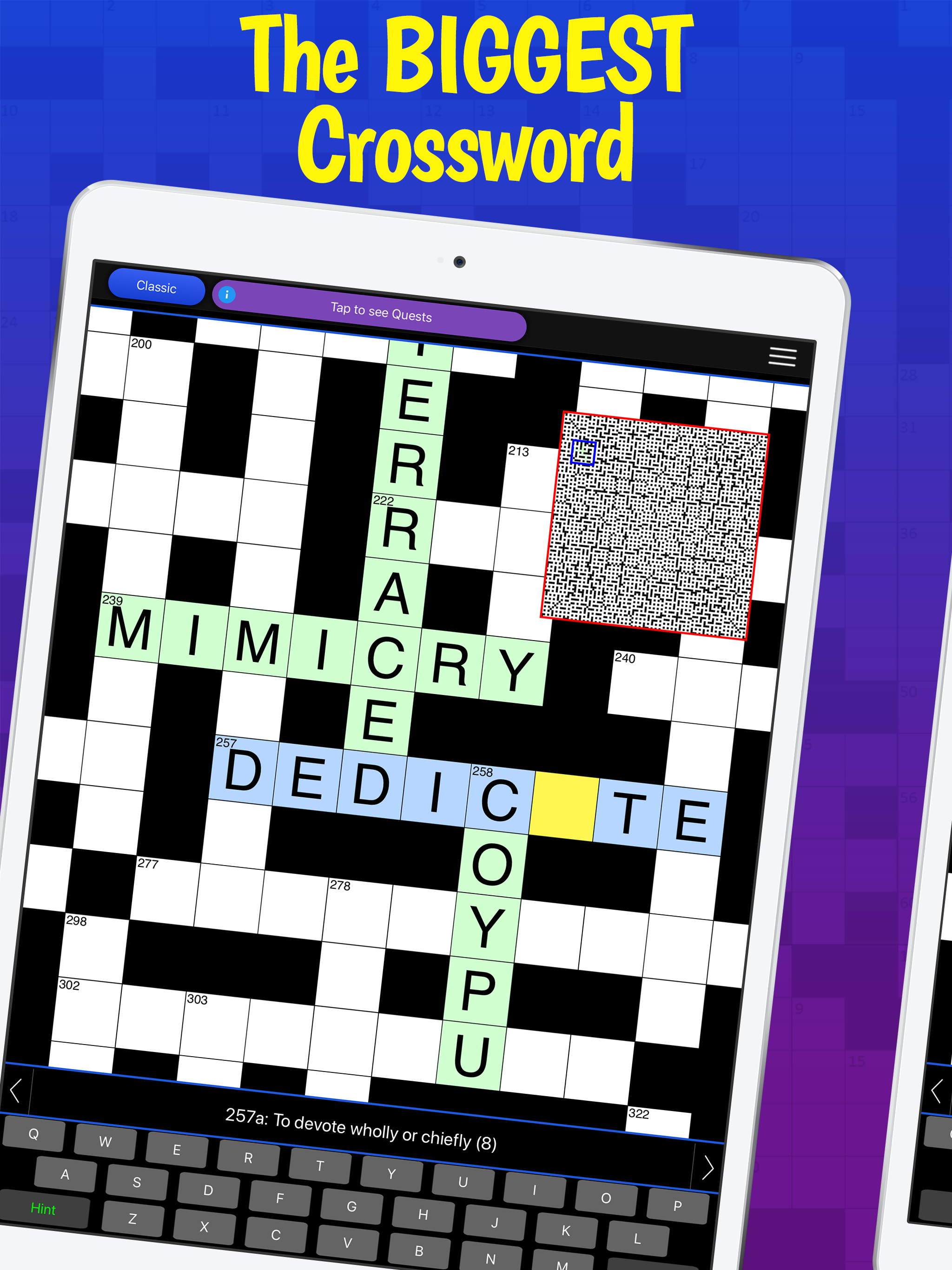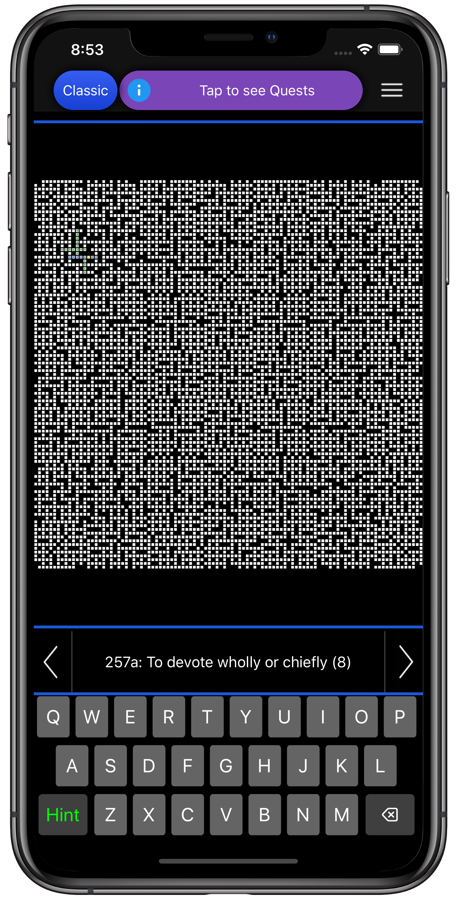 Taking up the challenge of creating something unique in the world of crosswords, plucky British company Teazel has developed the world’s biggest crossword in an app. With over 1250 clues and a grid size of 103x103 the puzzle is certainly big. The clues are tailored to suit the UK, US and non-US markets, with any specific cultural differences noted. There are two modes, Quest and Classic, with a Quest being a collection of related clues. The 80+ Quests help break down the huge puzzle into manageable chunks, with some intruiging categories such Cryptic and Mystery Quests. Already a hit on Android with 100k downloads in a matter of weeks, Teazel released the Apple and Kindle Fire versions in late January 2020.
