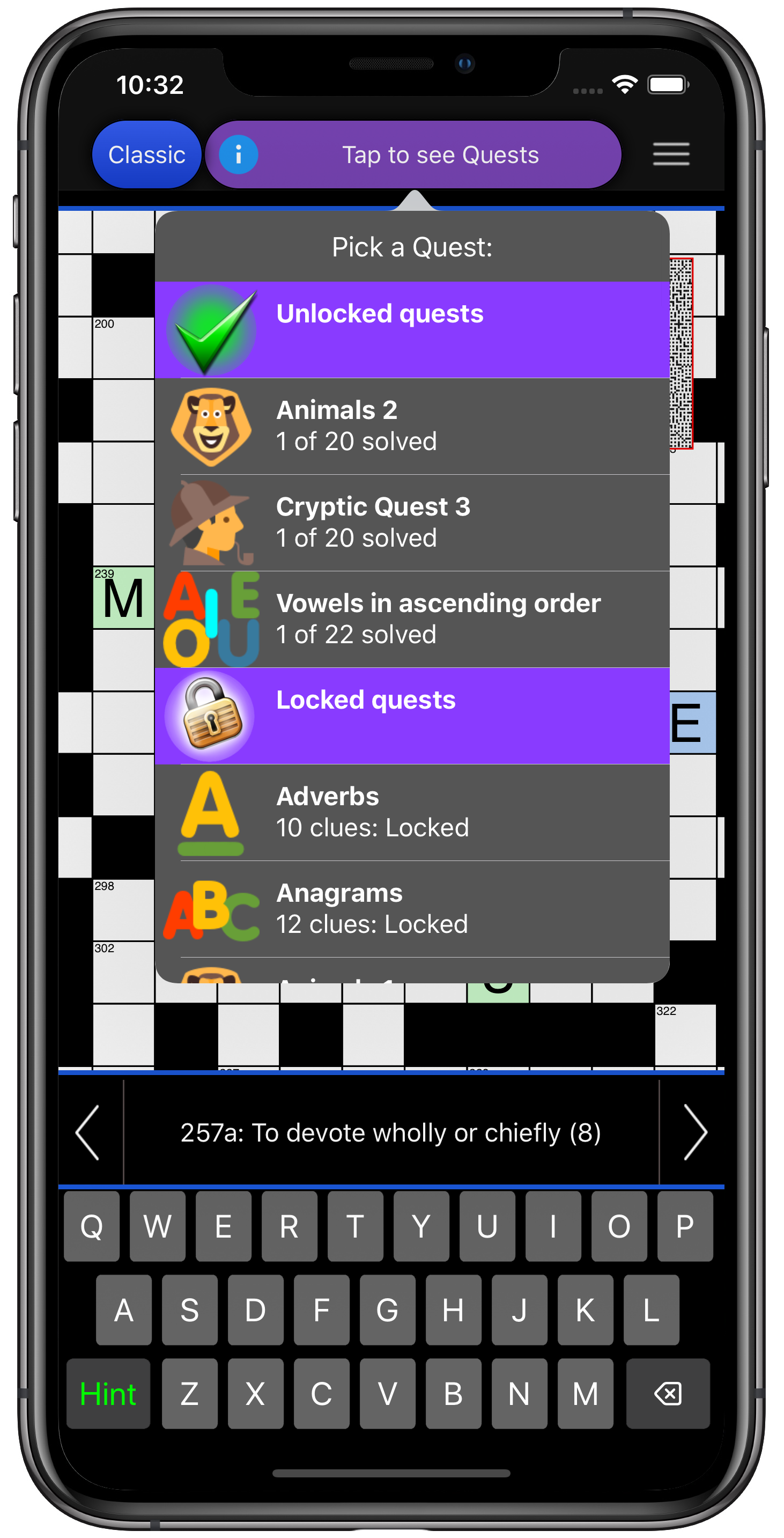 - Quest Mode, where each clue has been carefully crafted into a corresponding Quest. There are over 80 Quests to complete.